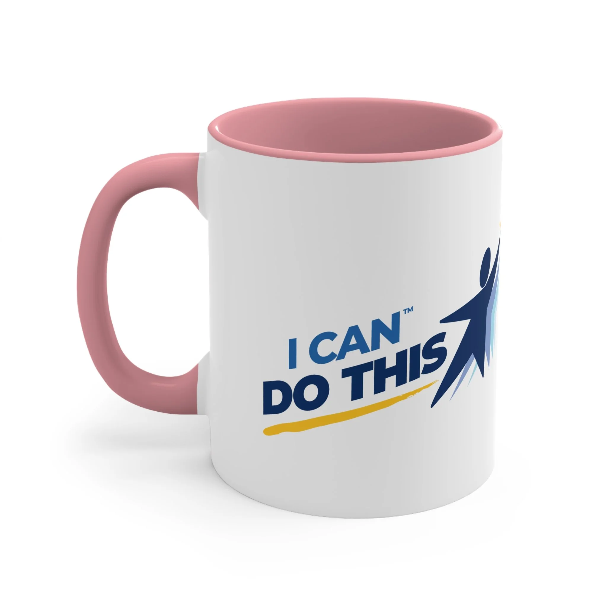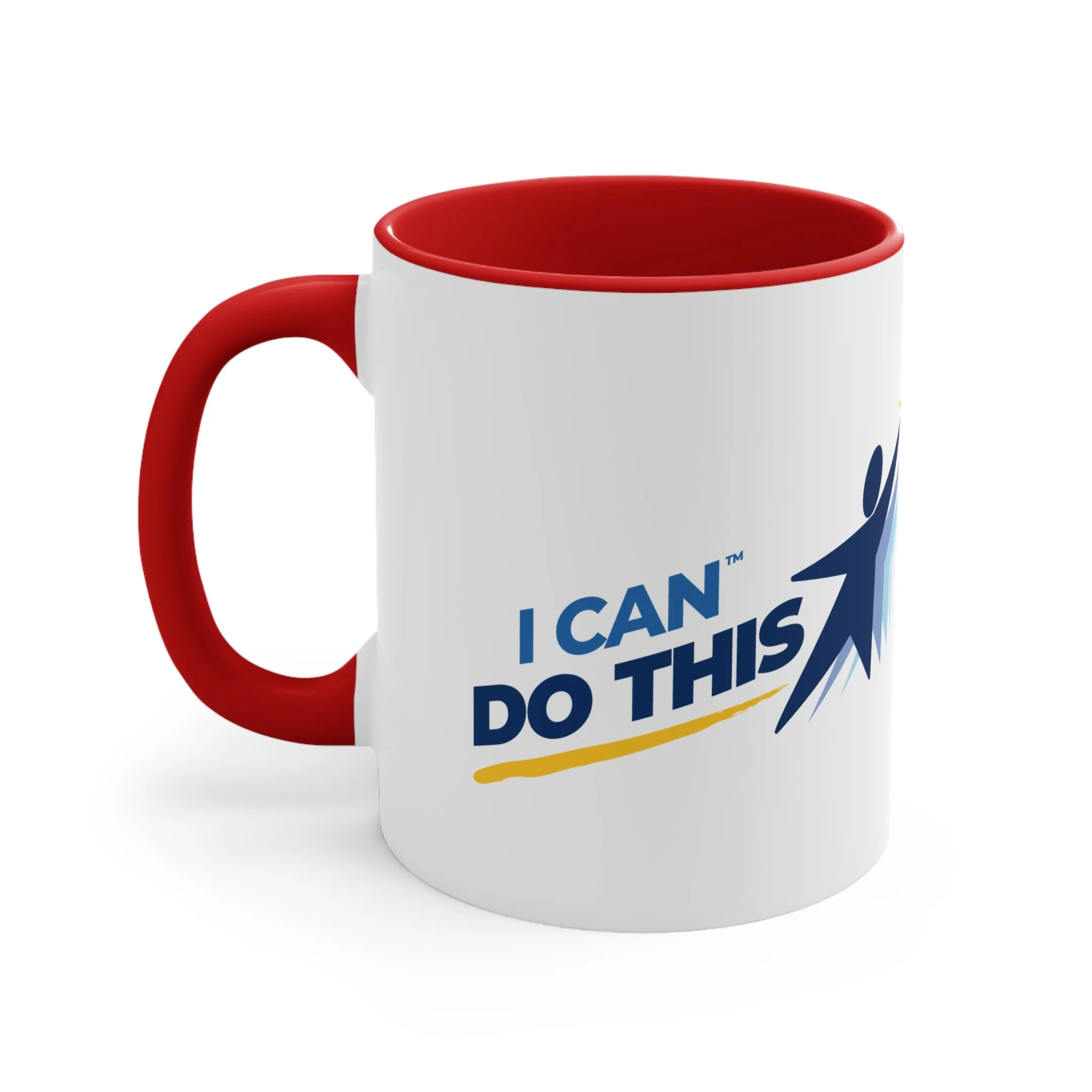 The personalized accent mug is exactly what mug merchants have been waiting for. With an array of color schemes (blue/white, green/white, red/white, and pink/white), these handled mugs give designers a wonderful canvas to work from. Any artwork is embellished relative to color schemes. The quality ceramic and printing can withstand machine washing.